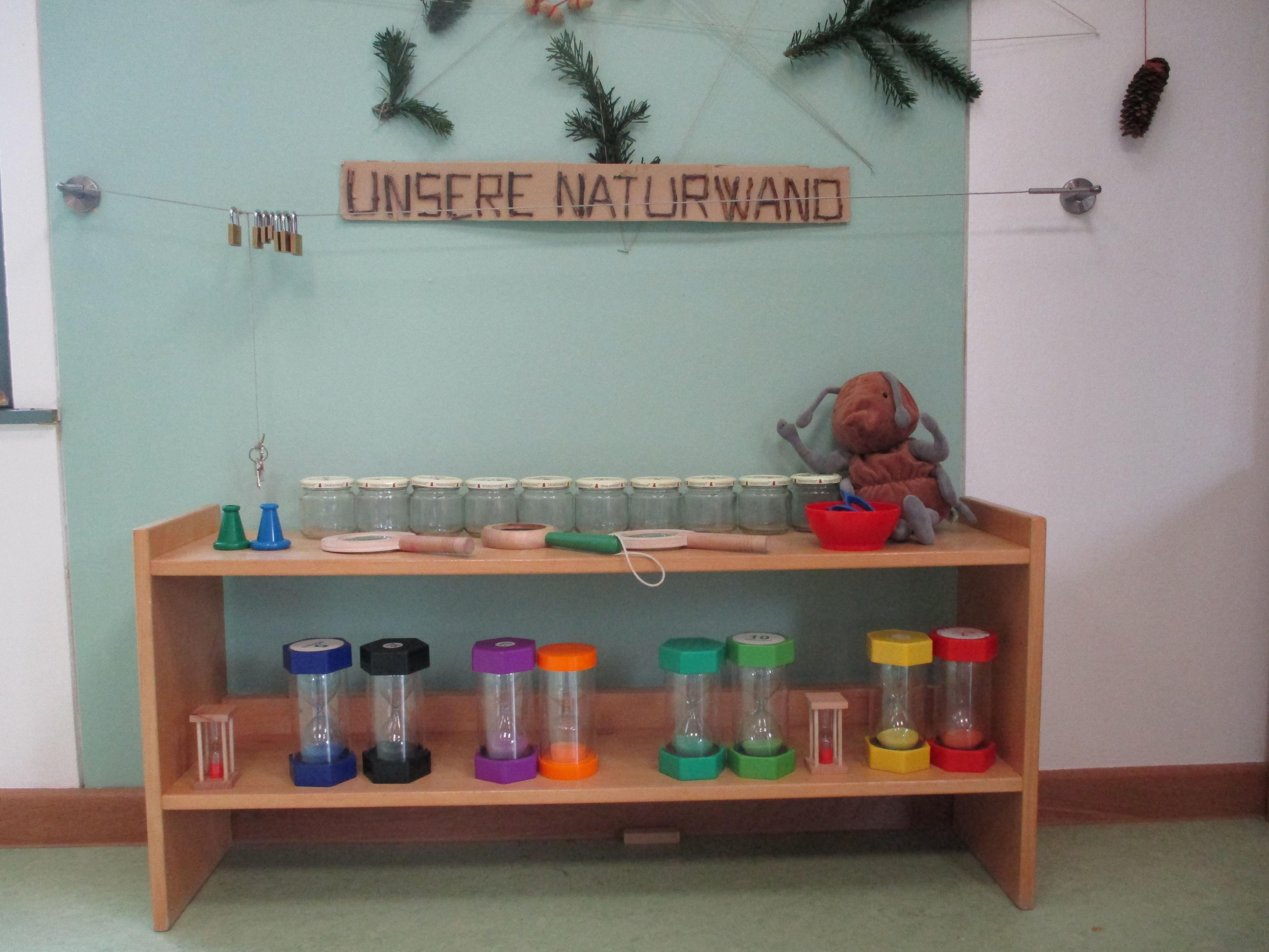 ab 9.00 Uhr: Brotzeit (gleitend) mit Buffet, Kleingruppenaktionen (zum Beispiel Sprachspiele für Migrationskinder und für baldige Schulkinder), Freispiel drinnen und draußen