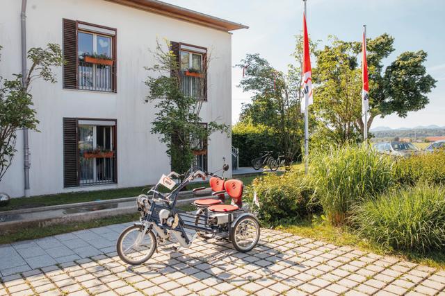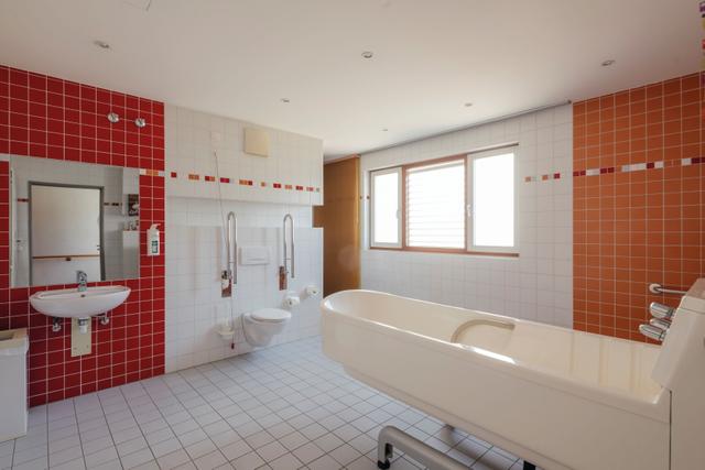 Die hellen und freundlichen Zimmer sind nur mit einem Pflegebett und einem Nachttisch ausgestattet, damit die Bewohner*innen eigene Möbel mitbringen und sich ganz nach ihren persönlichen Wünschen einrichten können. Selbstverständlich haben alle Zimmer